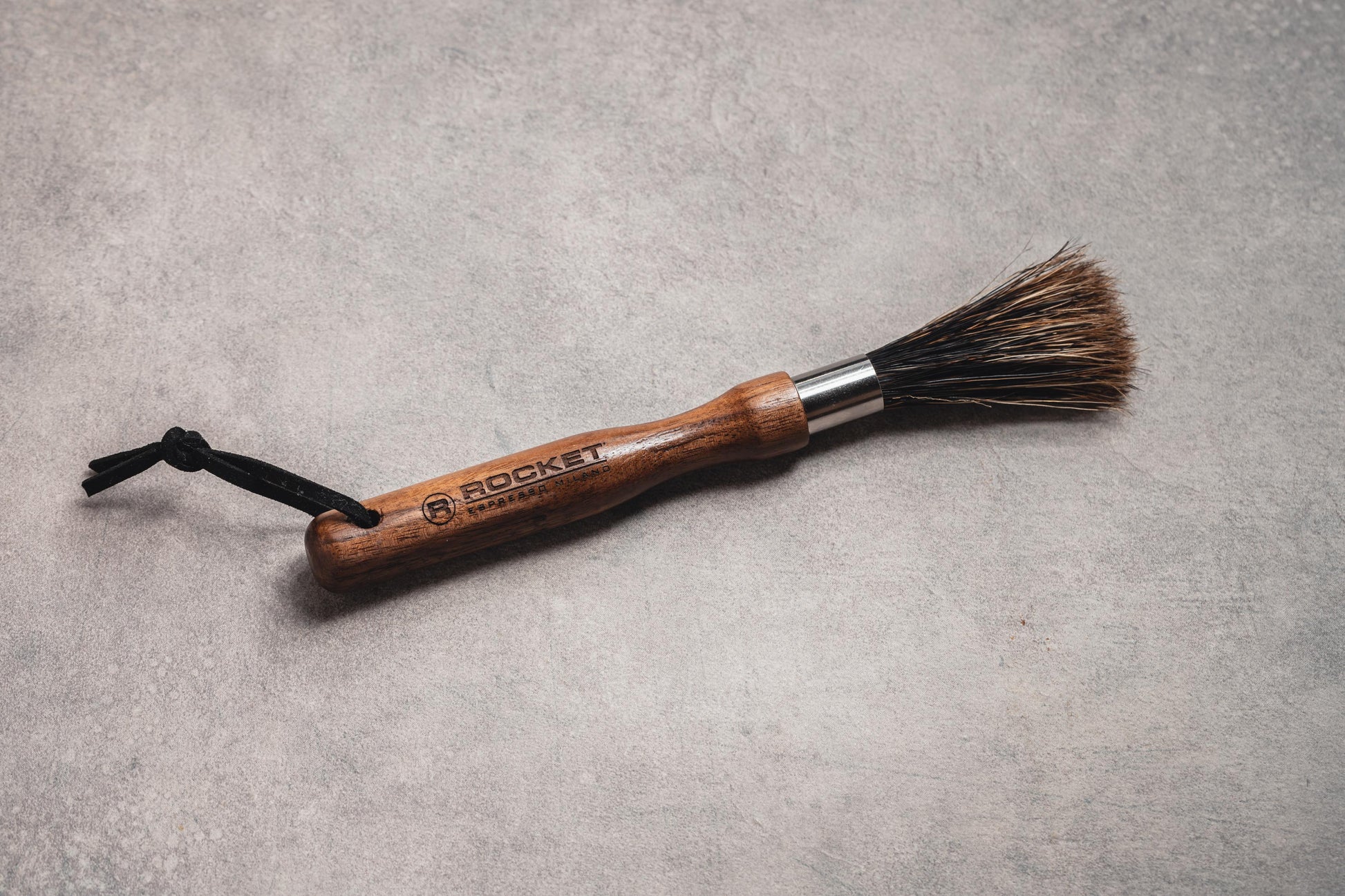 Custom engraved coffee brush for cleaning coffee machines and grinders and dry grounds. Made with walnut wood and food grade steel and synthetic fibre bristles. Used to clean my coffee machine, grinder, OCD, tamper, portafilter and other accessories.