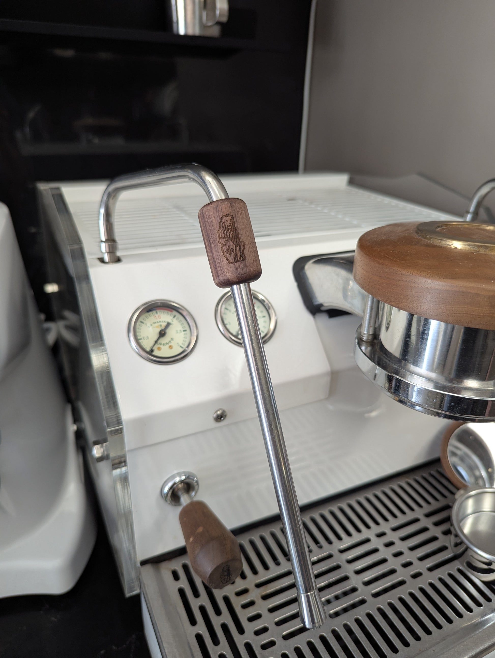 Steam wand wooden heat guard made from walnut. Suitable for almost all machines without no burn wands up to 10mm/0.4 in in diameter. Please consult with us or measure your machine with calipers.