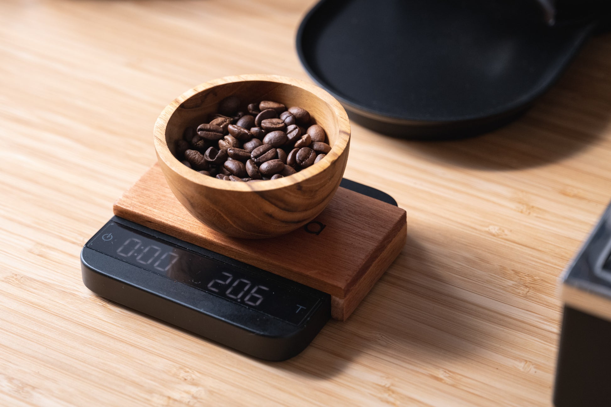 Teak bean bowl/ cup for weighing and dosing your beans. An aesthetic way to weigh our your beans before making your coffee. The bowl is capable of holding 30g of beans (medium roast) and will be suitable for both filter and espresso doses, even for some bulk brewing.