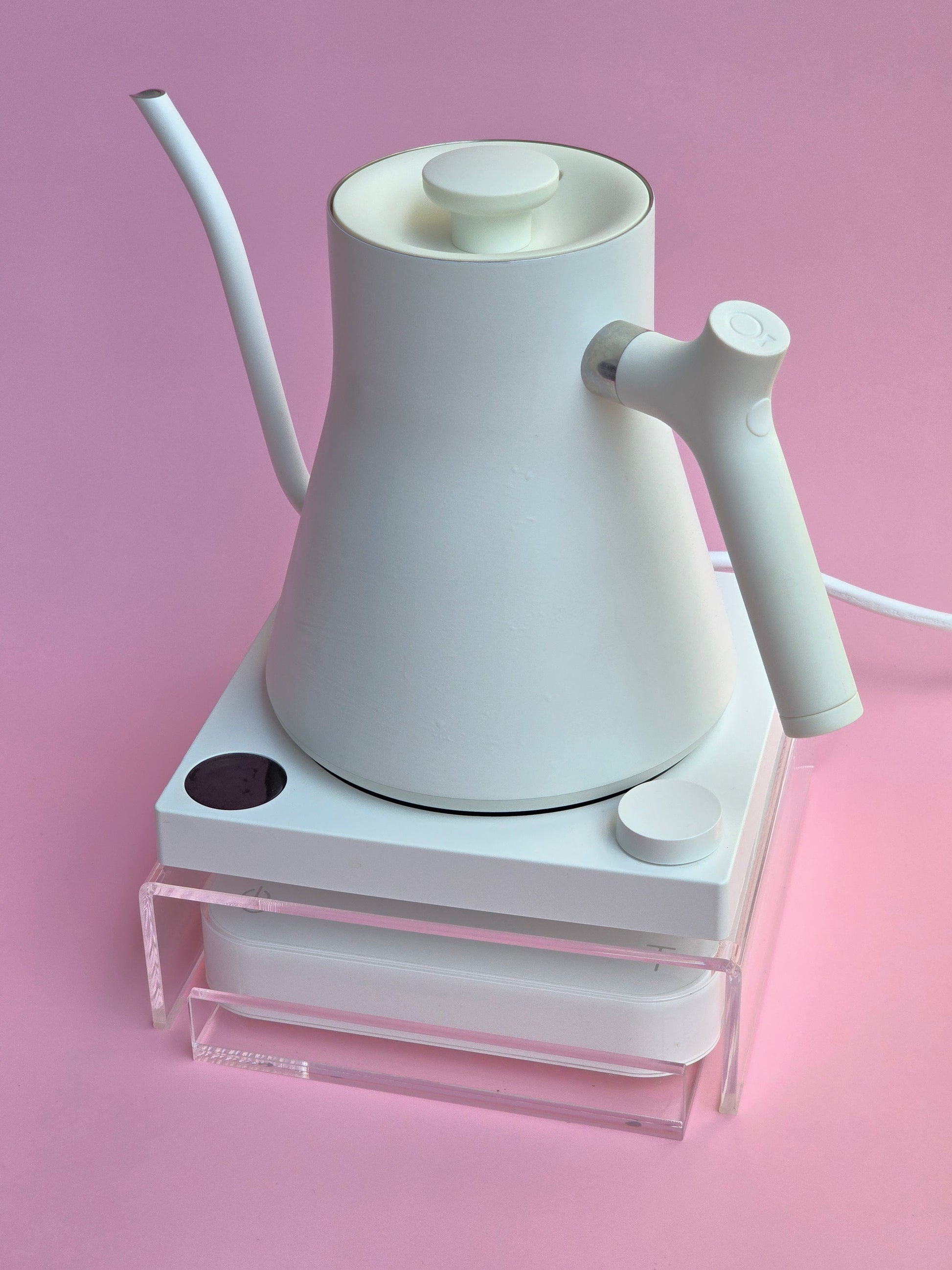Introducing the Transpour All Fit, the acrylic organizer that fits all kettles, including all Stagg EKG models, as long as they fit within an 18 cm (7.1-inch) square.