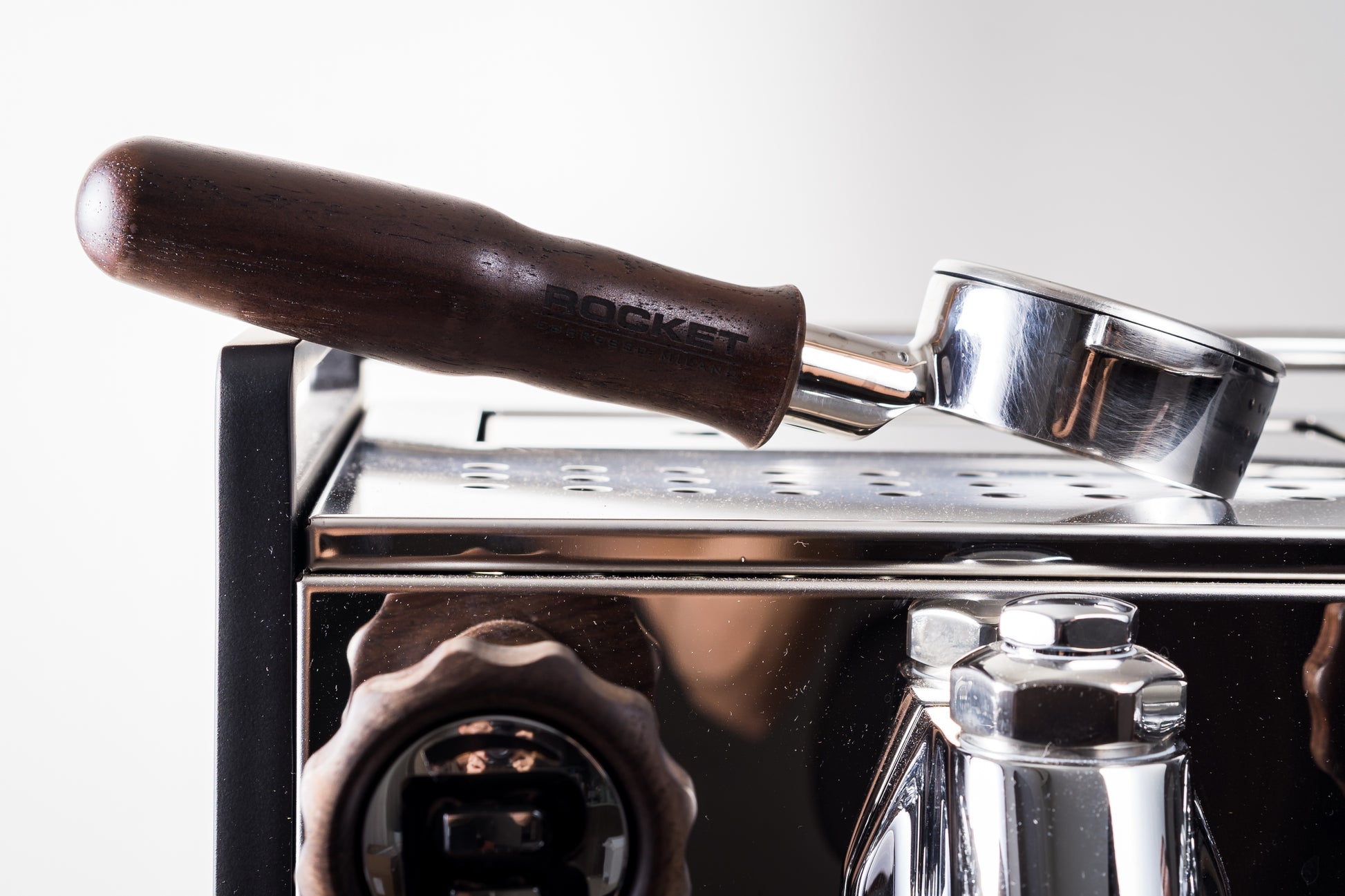 First made as a custom birthday gift for my friend, this Rocket Espresso Machine walnut wood parts are now available for purchase. It comes in a set of 2 big knobs, one smaller brew lever knob and a full bottomless portafilter