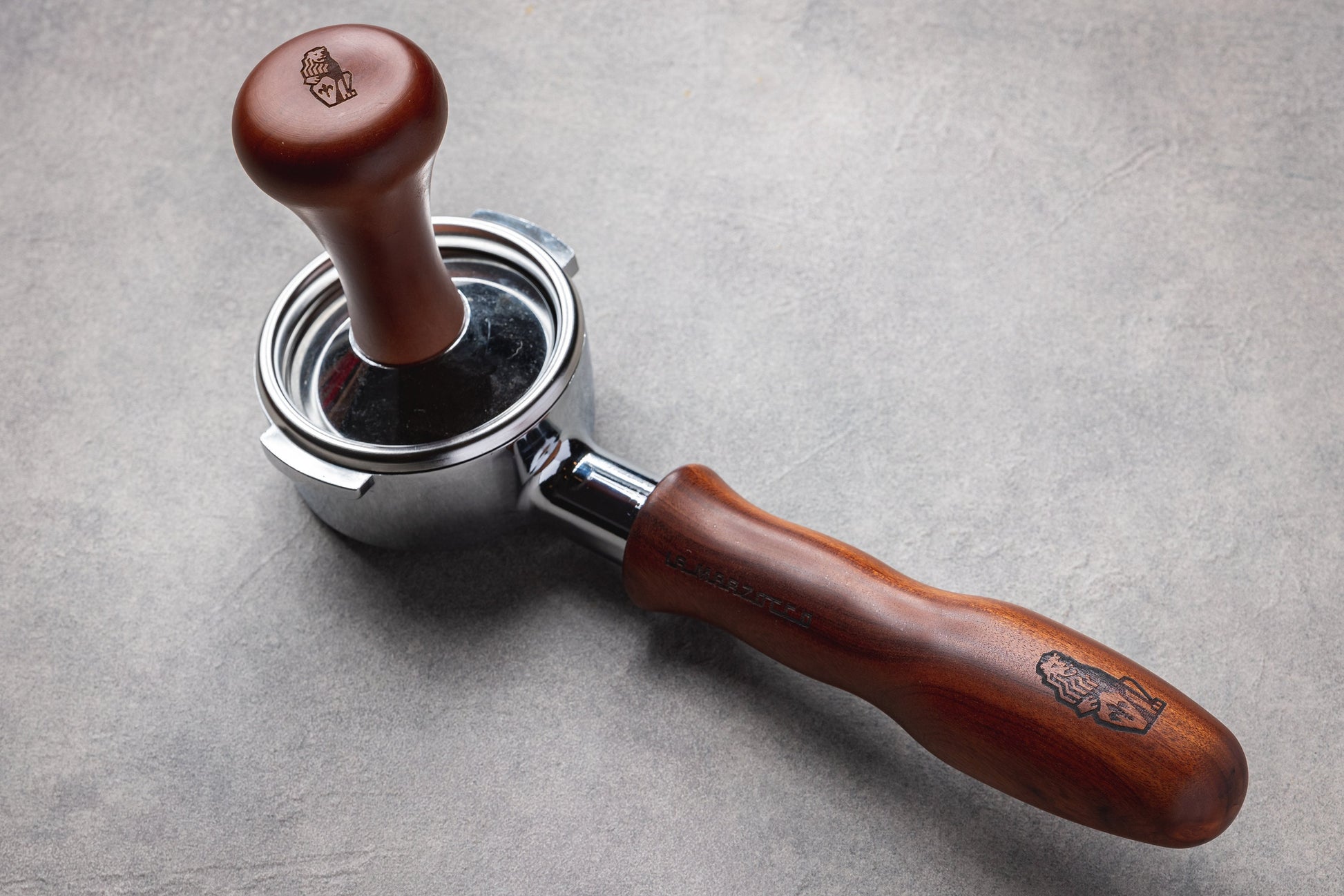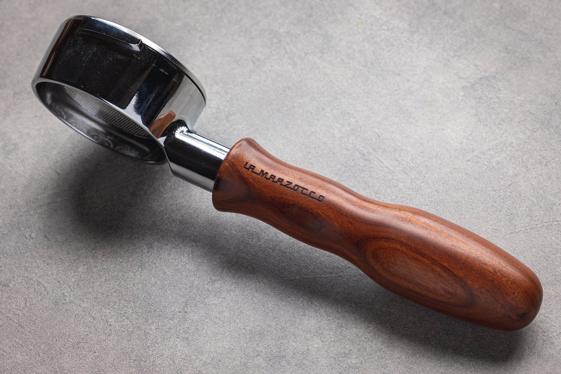 58mm Walnut Wood handle Portafilter for La Marzocco and E61 (Rocket, Lelit, Profitec, ECM, Gaggia. Message us if unsure) Machines, engraved to make it uniquely yours. Made with food grade steel and walnut wood. Price includes engraving, the head, handle and a standard double basket. IMS VST compatible.
