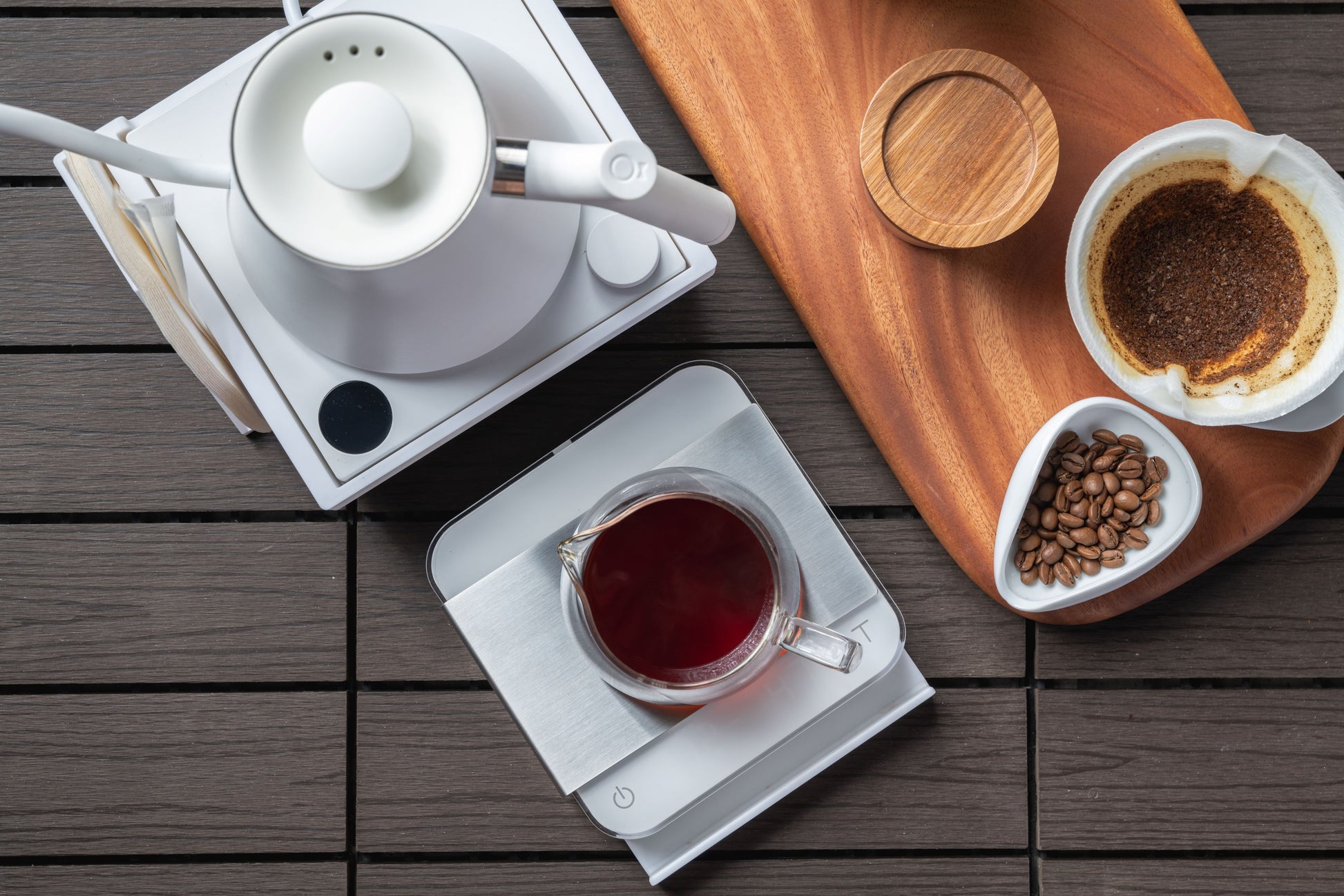 One of the key features is a storage space right under the kettle, complete with a slide-out tray. This is meant to neatly store your Acaia Pearl scale or similar models, making it easy to pull out whenever you need it, while also keeping it from sliding around when not in use.
