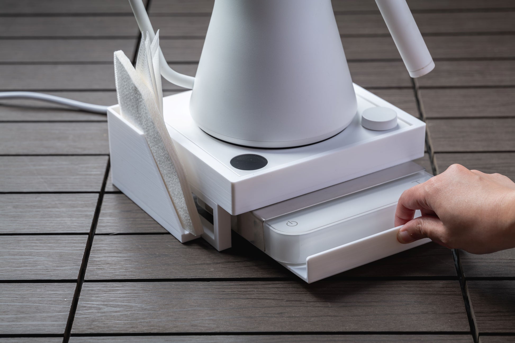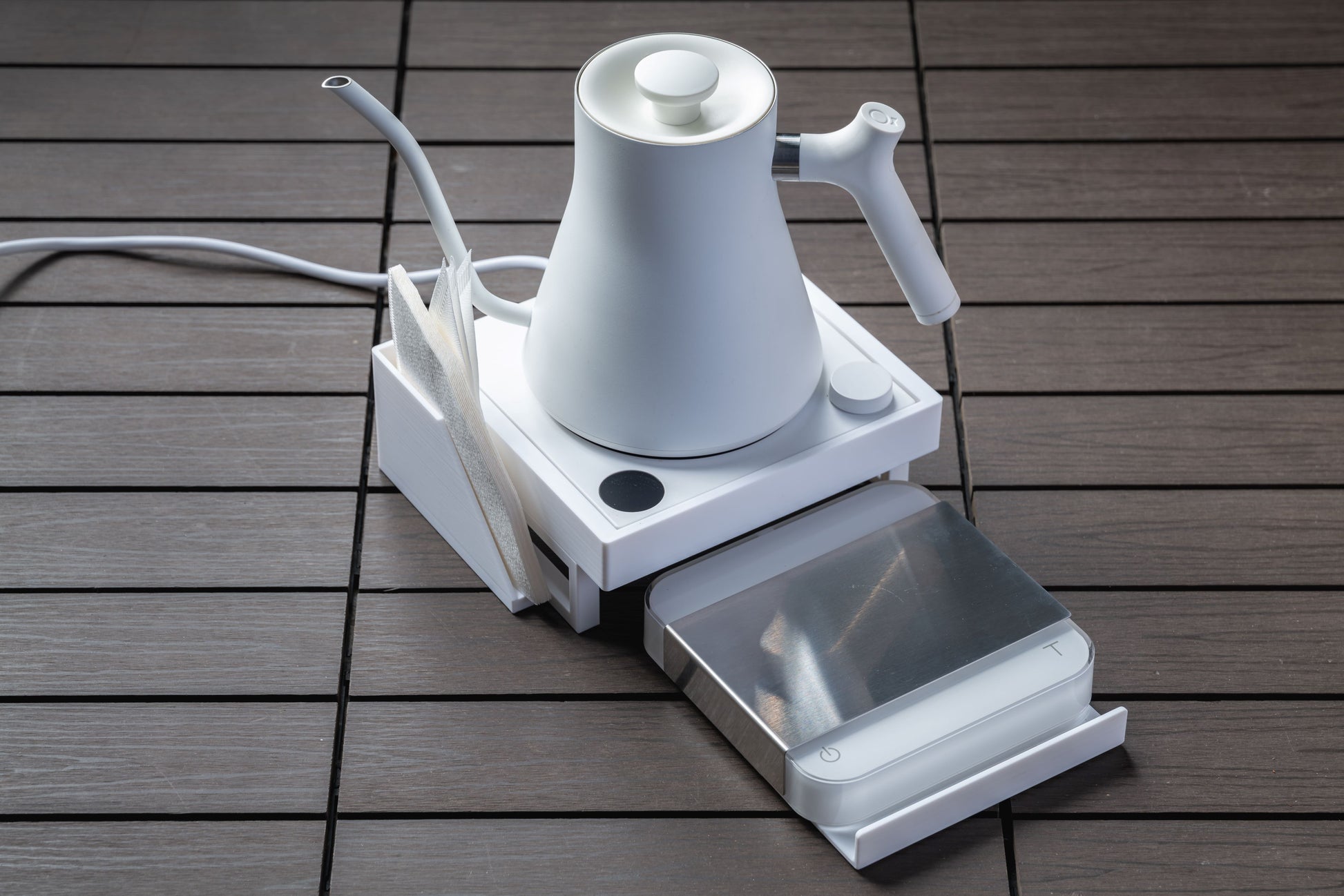 Introducing the latest version of the organizer, codenamed Vespour, designed exclusively for the Fellow Stagg EKG Kettle! The idea was to create a sleek, space-efficient add-on that makes it easier to store and access your scale and filters.