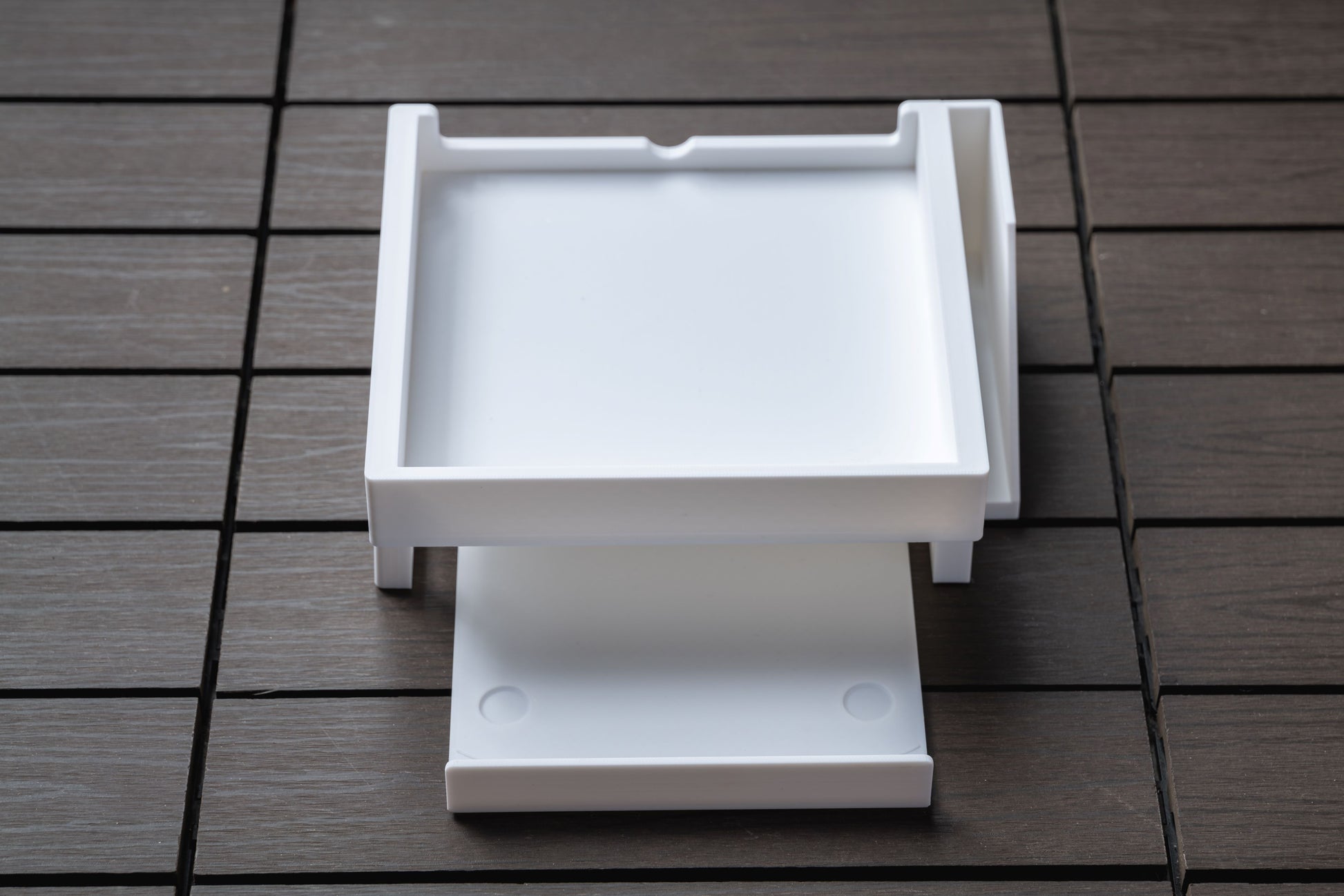 We chose PLA+ material for its durability, ensuring it can handle the daily coffee brewing routine while maintaining a modern look on your countertop. The shelf is specifically shaped to fit the Fellow Stagg EKG Kettle snugly, and it features non-slip feet for stability.